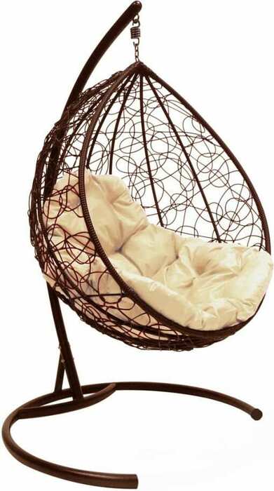 Подвесное кресло КАПЛЯ с ротангом коричневое, бежевая подушка